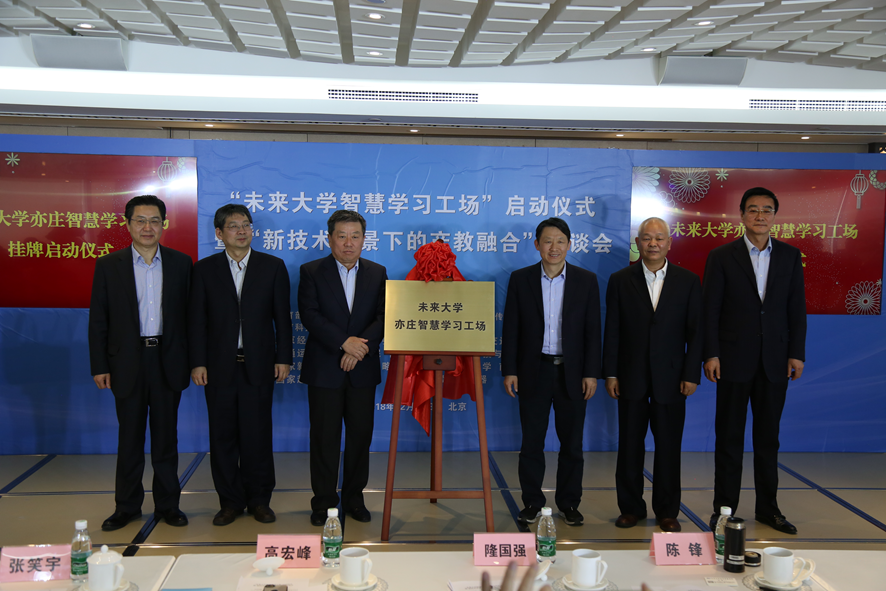 随后,与会领导共同为“未来大学亦庄智慧学习工场”进行揭牌,并分别见证“未来大学”产业学院及智慧学习工场实验合作项目签约、技术平台及创新基地合作签约和创投基金合作签约。最后,来自国家相关部委、教育研究机构、重点企业的10位嘉宾分别在专题座谈中发言。