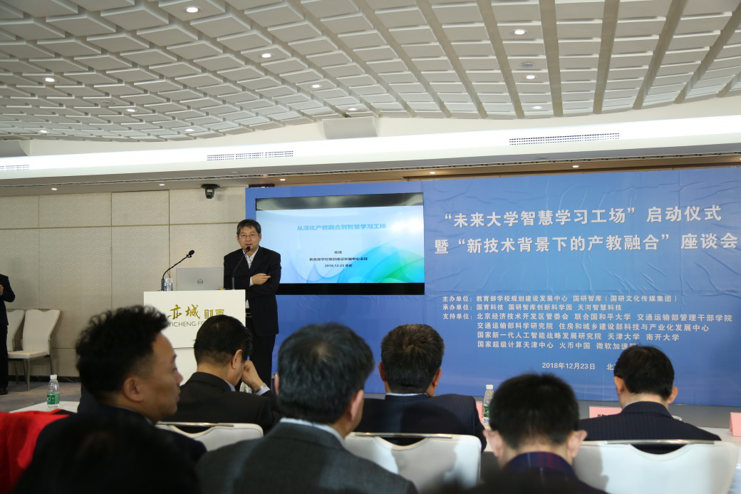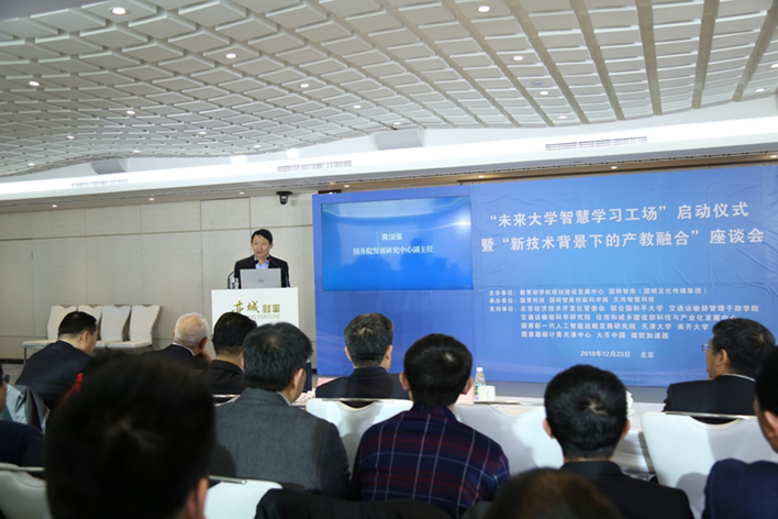 12月23日,由教育部学校规划建设发展中心和国研智库联合发起的“未来大学智慧学习工场”启动仪式暨“新技术背景下的产教融合”座谈会在北京经济技术开发区亦城财富中心举行。国务院发展研究中心副主任隆国强到会致辞并作主旨演讲。交通运输部原副部长高宏峰、国务院发展研究中心资产管理办公室主任徐鹏程、教育部学校规划建设发展中心主任陈锋等国家相关部委、开发区管委会、高校、教育研究机构、行业组织的官员和专家学者出席本次活动。