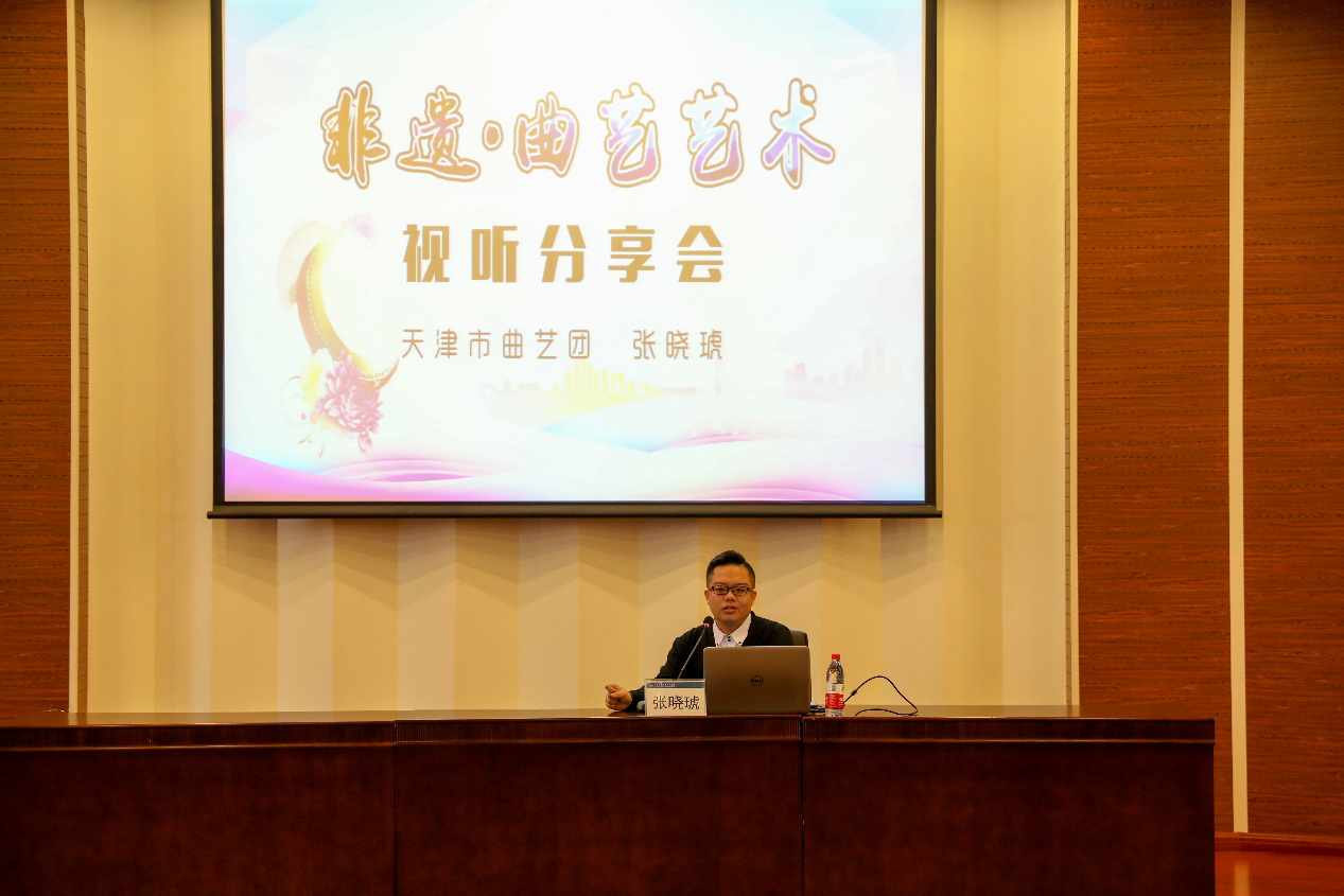为深入贯彻落实习近平总书记关于弘扬中华优秀传统文化重要讲话精神,大力弘扬中华优秀传统文化,有效发挥传统文化独特的文化育人和精神陶冶作用,积极推进培育和践行社会主义核心价值观教育,通过传承弘扬中华传统文化精髓,积极营造文明校园氛围。我院开展“品味传统文化·弘扬经典传承”第一届校园传统文化艺术节。作为本届艺术节的第一场活动,特邀请到了天津市曲艺团张晓琥老师到校开展主题为“曲艺非遗艺术试听分享”的讲座。学院约200余学生参加了讲座。