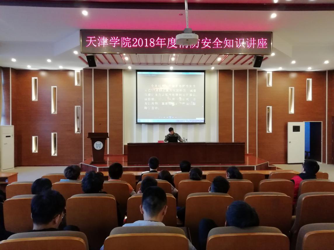 按照学院保卫处2018年“119”消防安全宣传月系列宣传活动工作计划,为普及消防安全常识,切实提高全院师生员工的消防安全意识,学院保卫处组织策划了2018年“119”消防安全宣传月系列活动。11月21日下午,问鼎国际 2018年度消防安全知识讲座在理工图书馆报告厅圆满举行。我院大一至大三学生代表共200余人参加了此次安全知识讲座,讲座特邀请了宝坻消防支队九园中队张天宇中队长主讲。